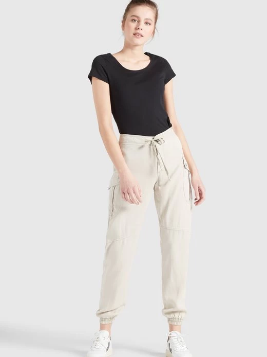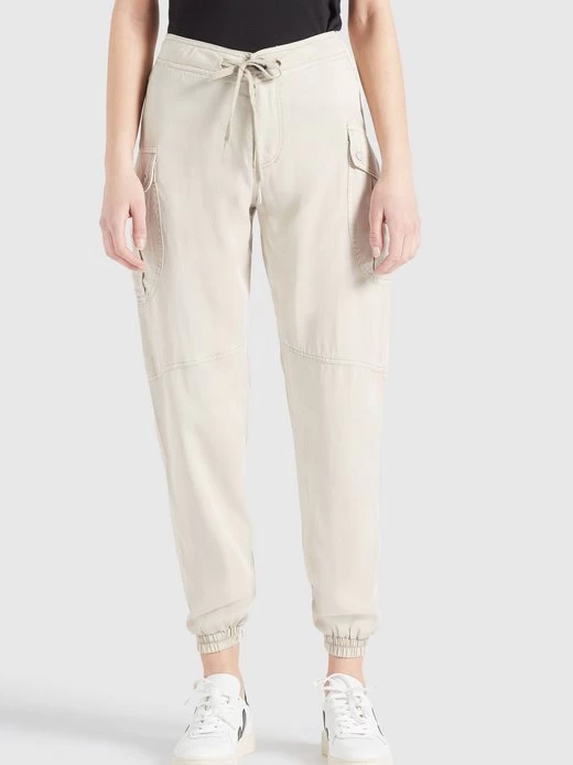 Aus angenehm weichem Material im Regular Fit und mit Mid Waist kommt die leichte khujo Hose JOSLIN. Diese sommerliche Joggpant begeistert zudem durch Cargo- und Gesäßtaschen mit Druckknöpfen in denen sich allerlei für unterwegs verstauen lässt. Ein Zugband an der Taille und die elastischen Abschlüsse an den Hosenbeinen komplettieren das urbane Design.