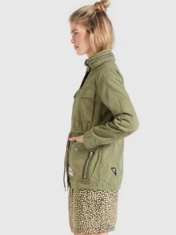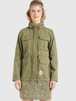 Du liebst den Military-Look? Dann ist die kurze khujo Jacke PAOLA2 aus Baumwolle genau richtig! Diese leichte Sommerjacke begeistert durch jede Menge Stauraum, eine im Kragen verstaubare Kapuze mit Kordelzug, eine Kombination aus Reißverschluss und Druckknopfleiste, einem Kordelzug an der Taille sowie verstellbaren Riegeln an den Ärmelenden.