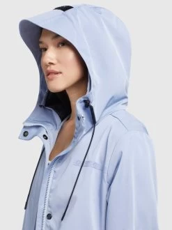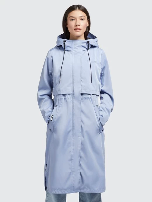 Der knielang geschnittene khujo Mantel JOMANA ist mit einem leichten Innenfutter, einer hoch schließenden Kapuze, Eingrifftaschen mit Druckknöpfen, einem Öffnungsschlitz mit Mesheinsatz im Rückenteil und elastischen Kordelzügen an der Kapuze und der Taille ausgestattet. Der Sommermantel bietet Dank verkürztem Zwei-Wege-Reißverschluss und seitlichen Schlitzen ein Optimum an Bewegungsfreiheit.