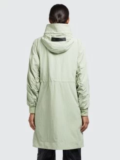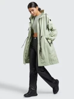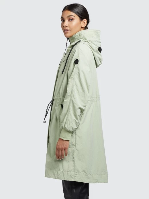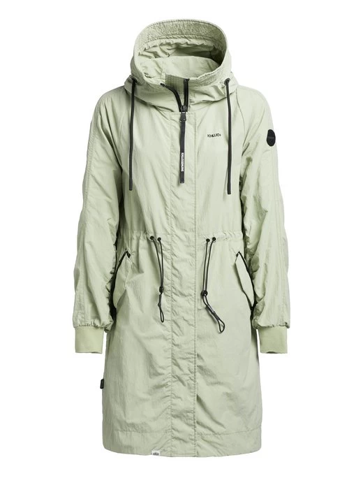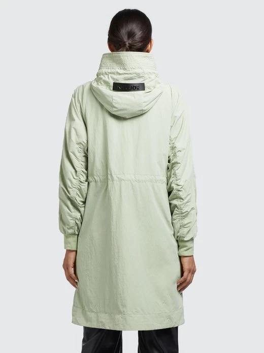Der lässige Schnitt, das leichte Material mit Crinkle-Effekt und die gesmokten Ärmelinnenseiten geben dem khujo Mantel SILICA einen unverwechselbaren Look. Ein Zwei-Wege-Reißverschluss, das Innenfutter mit einem Einsatz aus Mesh am Oberkörper, Kordelzüge an der Kapuze und Taille, elastische Abschlüsse an den Ärmelenden sowie Reißverschlusstaschen und eine Innentasche runden das Desgin ab.