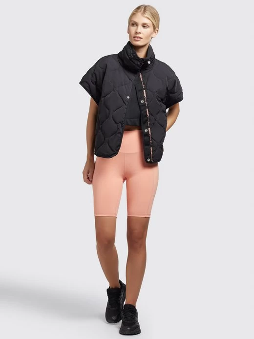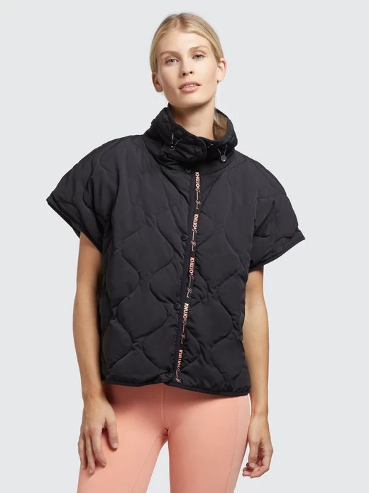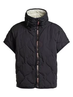 Die überschnittenen Schultern und die offenen Seiten mit Druckknöpfen verleihen der khujo Weste ERY einen besonderen Look. Zudem setzen der hoch schließende Stehkragen mit elastischem Kordelzug und eine Logo Bordüre bei dieser hüftlangen Steppweste modische Akzente und eine innenliegende Reißverschlusstasche bietet Stauraum für Kleinigkeiten.